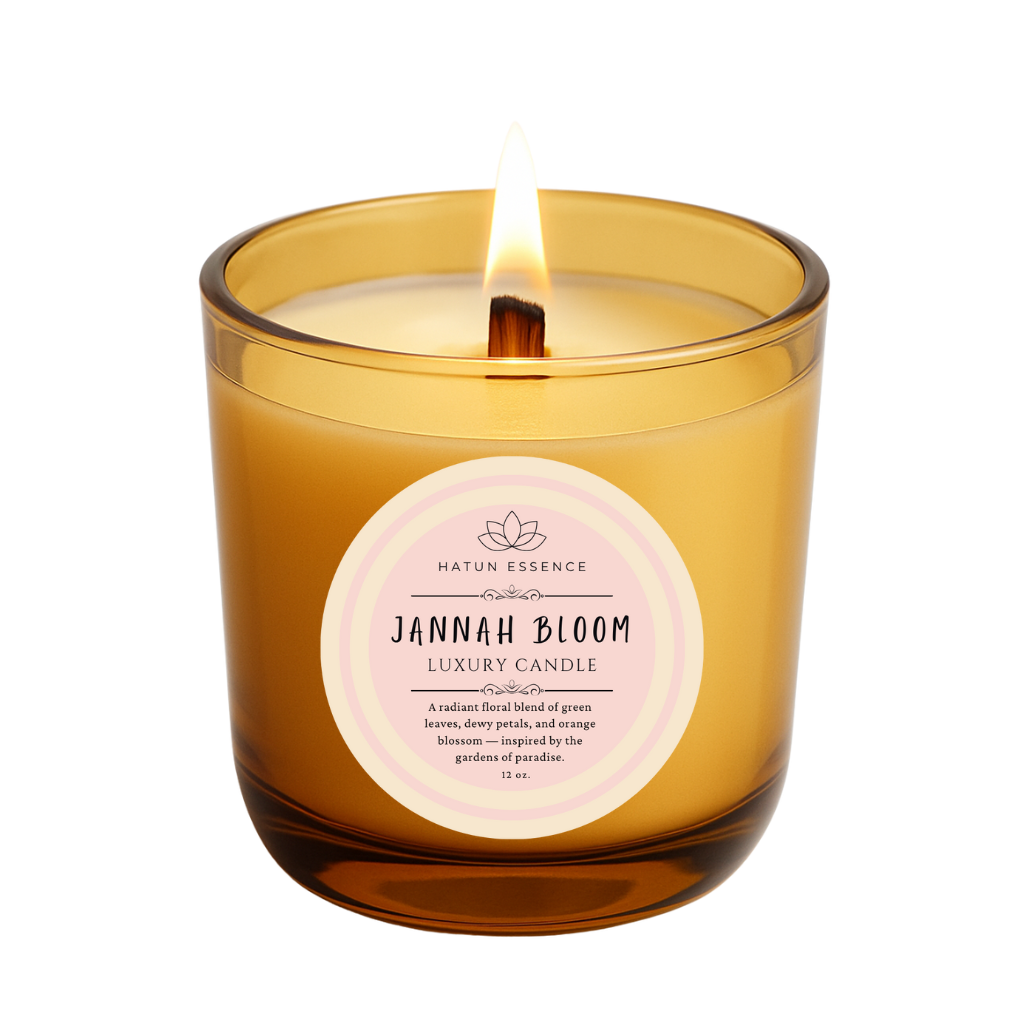 Jannah Bloom – 12oz Coconut Apricot Wax Candle | Champagne Sonoma Jar with Wooden Wick | Green Leaves, Dewy Petals & Orange Blossom