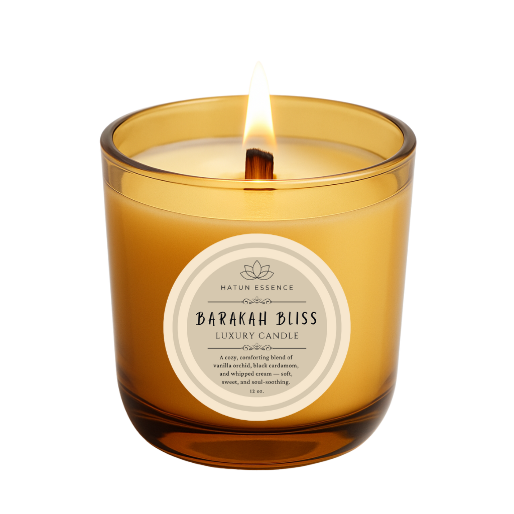 Warm, creamy, and gently spiced — Barakah Bliss is a soul-soothing blend of vanilla orchid, exotic black cardamom, and sweet whipped cream. Hand-poured in a luminous Champagne Sonoma jar and sealed with a natural cork lid, this candle invites feelings of warmth, barakah (blessing), and cozy elegance.